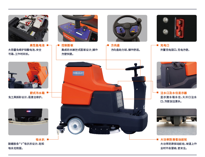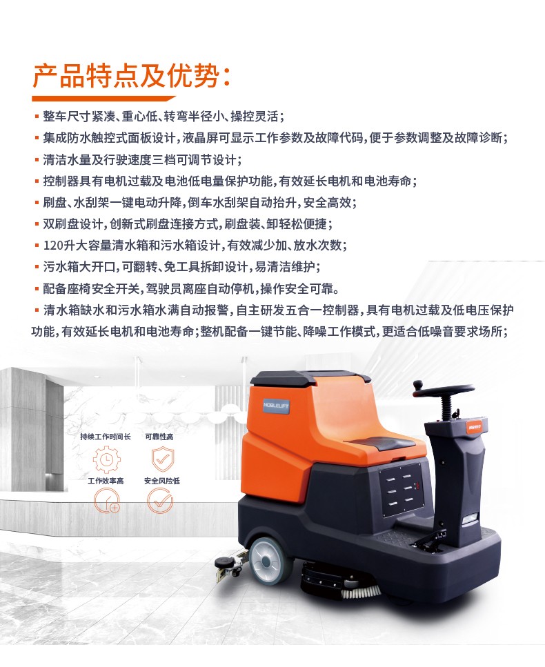 ● 清水箱缺水和污水箱水滿自動(dòng)報(bào)警,自主研發(fā)五合一控制器,具有電機(jī)過(guò)載及低電壓保護(hù)功能,有效延長(zhǎng)電機(jī)和電池壽命;整機(jī)配備一鍵節(jié)能、降噪工作模式,更適合低噪音要求場(chǎng)所